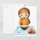 Ein lächelndes Mädchen, das ihr Frühstück isst Postkarte