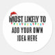 Suchen Sie lustige, sonderbare und personalisierte Weihnachtsgeschirr? Unser Vorlagentext "Most Lighely To" ist genau das, was Sie brauchen! Sie können das Design auf trendige T - Shirt übertragen, um Reisebügel und Aufkleber zu transportieren. Diese Kollektion ist ideal, um Ihre einzigartige Atmosphäre zu zeigen. Hier sind viele Ideen enthalten, um Ihre kreativen Säfte zum Laufen zu bringen. Perfekte Geschenkideen für Freunde, Familie, Chef, Mitarbeiter, Kollegen, Lehrer, Kinder, Erwachsene, Mütter, Väter und mehr! Egal, ob Sie "höchstwahrscheinlich zu spät in die Klasse", "am wahrscheinlichsten bei Brunch zu finden" oder sogar "am ehesten ein Nickerchen überall zu nehmen" sind, wir haben für Sie den passenden Artikel got. Mit beliebten Designs wie "Am wahrscheinlichsten bei Trivia zu gewinnen", "Am wahrscheinlichsten, Snacks zu bringen" und "Am wahrscheinlichsten bei Viral" geht es in dieser Sammlung um das Feiern der lustigen, relationalen Momente, die Sie, naja.. Sie! Machen Sie sich bereit, Ihre Persönlichkeit mit Stil zu reppen - egal wohin Sie gehen! Mehr Spaß beim Thema "höchstwahrscheinlich zu": "Am wahrscheinlichsten startet man ein Tanz-Party", "am wahrscheinlichsten bei der Bestellung", "am wahrscheinlichsten wird das Leben des Party sein", "am wahrscheinlichsten wird eine Serie von Binge-Watch", "am wahrscheinlichsten, ein Selfie zu nehmen", "am meisten Wahrscheinlich vergessen ihre Keys", "am wahrscheinlichsten, dass sie ins Lied brechen", "am wahrscheinlichsten, dass sie Pajamas den ganzen Tag tragen", "am wahrscheinlichsten auf einer spontanen Straßenreise", "am wahrscheinlichsten, einem Vater Witze zu erzählen", "am wahrscheinlichsten, Filme zu zitieren", "am wahrscheinlichsten, dass sie sich in Mode kommen", "am meisten wahrscheinlich, Wahrscheinlich zu viele Pflanze zu besitzen", "am ehesten den ganzen Kaffee trinken", "am wahrscheinlichsten durch den Alarm schlafen", "am ehesten verzögern", "am wahrscheinlichsten zu überpacken", "am wahrscheinlichsten ein Argument zu gewinnen", "am wahrscheinlichsten zum Lachen zu bringen", "am wahrscheinlichsten, jeden Hund zu füttern", "am meisten wahrscheinlich zum Lachen zu bringen" Wahrscheinlich wird es zu spät Bleibe", "am wahrscheinlichsten, dass Spielabend stattfindet", "am ehesten ein Perfektionist."
