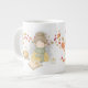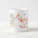 Ein Mädchen mit einer Tasse Tee und fliegenden Blä