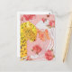 Eine zarte Abbildung, die ein blondes Mädchen mit einem gelben Leopard darstellt, umgeben von rosa Blume.