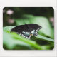 Ein Foto eines schwarzen Schmetterlings auf Blätter in einem Garten.