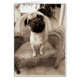 © Jim Dratfield / Wilder Apple. Ein sepia Schuss eines auf einem Stuhl stehenden Mops. Der Kopf des Mops ist mit einem Blick des Staunens in den Augen verbunden.