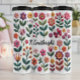 Diese Abbildung zeigt ein lebendiges Muster stilisierter Blume in verschiedenen Formen und Farben. Die Blume sind so angeordnet, dass ein Rahmen mit Leerzeichen in der Mitte erstellt wird. Die Kunst hat eine papierartige Textur mit kräftigen Rosa-, lila-, Gelb- und Rottönen, die ihr eine fröhliche und spielerische Ästhetik verleiht.