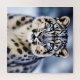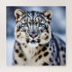 Ein Schneeleopard in unberührter Winterlandschaft.