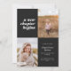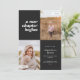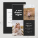 Diese moderne Ankündigung des Abschlusses enthält die Worte "ein neues Kapitel beginnt" oben links auf der Karte auf einem schwarzen Hintergrund. Es hat Räume für zwei vertikale Fotos, um die Reise Ihres Absolventen zu feiern, ein Foto aus der Vergangenheit und ein Foto aus der Gegenwart. Die Vorderseite der Karte hat Platz für den Namen des Absolventen, das Schuljahr, die Schule und zukünftige Pläne. Die Rückseite der Karte hat Platz für zusätzlichen Text und kann als Einladung für Graduiertengruppen oder zum Schreiben einer persönlichen Nachricht verwendet werden.
