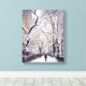 Ein Mann, der an einem Wintertag eine schneebedeckte 5th Avenue in New York City entlang geht