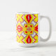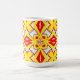 Tasse, Ein lebendiges rotes, gelbes und weißes Farbmuster klassisches Design. Die Tasse des Kaffees ist eine stabile Tasse, die oft hauptsächlich für den Kaffee, Tee oder heiße Schokolade verwendet wird. Durch seine langlebige Bauweise kann es Wärme behalten, was es ideal zum Schlucken macht. Neben dem Trinken werden Kaffeetassen oft zum Gaben und zur Darstellung von Kreativität verwendet.