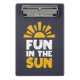 Ein Schild, das Spaß an der Sonne sagt Mini Klemmbrett