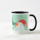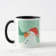 Ein Schneemann, der eine Verzierung auf einem Baum Tasse