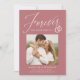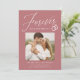 Erfahren Sie mehr über Ihre Verlobung mit diesen Verlobungen aus dem Foto! Die Ankündigungen enthalten die Phrase "Forever hat einen schönen Ring" in einem weißen Kalligraphieskript, das durch eine Abbildung von Hochzeitsringen auf einem staubigen Hintergrund der Rose hervorgehoben wird. Ihr quadratisches Foto wird in der Nähe der Mitte des Designs mit Ihren Namen und weiteren Details angezeigt. Die Ankündigung der modernen Verlobung kehrt zurück, um ein weißes und staubiges geometrisches Design der Rose zu zeigen.