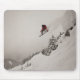 Ein Snowboarder springt von einer Klippe in Puder Mousepad