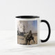 Ein Soldat reagiert auf eine kontrollierte Expo Tasse