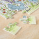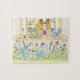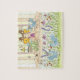 Eine farbenfrohe Abbildung eines kleinen Mädchens, das aus einem Fenster schaut, und blaue Vögel unter den Blume befinden sich unterhalb des offenen Fensters.