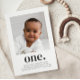 Eine moderne Einladung zum Ersten Geburtstag mit eigenem Foto und dem Wort "eins" darunter.