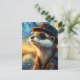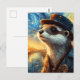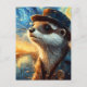 Die künstlerische Intelligenz eines Otters in einer sternenstarken Nachtstadt entlang eines Flusses mit einem Steampunkhut und einem Anzug