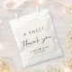 Chic Gastgeschenk Hochzeit-Tasche mit "A Sweet Danke" in einer Mischung aus einfachen Typografie und einem modernen Drehbuch, Ihre Namen durch ein Herz und Ihr Hochzeitstag verbunden.