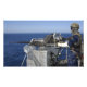 Ein US Navy Gunner's Mate feuert während der Waffenausbildung an Bord der USS Boxer eine 50-kalibrige Maschinenwaffe mit Schiffen.