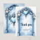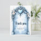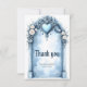 Ein verzierter, hellblauer Bogen mit Blumenakzente Dankeskarte