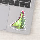 Ein weiblicher Hadrosaurus, der eine Puppe hält. Aufkleber