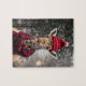 Eine festliche Giraffe mit Weihnachtsmannmütze und Kariertem Scarf