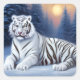 Ein weißer Tiger sitzt im Schnee Quadratischer Aufkleber