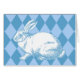 Eine Vintage Abbildung eines Kaninchens, das in einem blau auf weiß aufgefärbt ist.