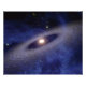 Ein weit entferntes Sonnensystem, in dem Planeten und Asteroiden um zwei Sonnen kreisen, die mit Animation bespielt werden.