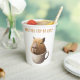 Das Design beinhaltet ein witziges Wortspiel namens "Another Cup of Capy" und zeigt den Kopf einer Capybara aus einer Kaffeetasse heraus. Das Design ist schlau und spielerisch, das niedliche Gesicht der Capybara und die absonderliche Ausdruckskraft tragen zum Charme der Tasse bei. Das Stück ist perfekt für Pun-Liebhaber und Tierfreunde, und die clevere Kombination der beiden macht ein einzigartiges und unterhaltsames Design.