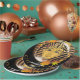 Haben Sie eine ägyptische Themenfeier oder Feier in diesem Herbst? Dies sind die perfekten Teller für Sie, um Ihr Thema zum Leben zu erwecken. Diese Teller sind ein gedrucktes Bild eines Acrylgemäldes eines alten ägyptischen Königs. Die Farbtöne sind in Gold und Schwarz gehalten, mit einem Hauch von bunten Blätter.