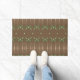 Eine Wohngestaltung Fußbodenmatte mit schwarzem Tuch und einem Blattprint. Der braune Hintergrund kann auf eine beliebige Farbe umgeschaltet werden, um der Wohngestaltung zu entsprechen.