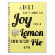 Wenn Sie Liebe Kuchen und Hass Diät ist dies das Notebook für Sie. Mit diesem lustigen Slogan 'A Diet Can't Bring You Joy Like Lemon Meringue Pie' Fun Typografie mit einer quirligen Zitrone Meringue Pie-Illustration können Sie alle Ihre Lieblingsrezepte aufzeichnen und der Welt die Wahrheit verkünden. Das macht das Geschenk für Feinschmecker und Freunde. Slogan, Design und Illustrationen der Künstlerin Catherine Sweetman