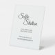Dieses einfache, schwarz-weiße Kalligraphie-Selbstbedienungsschild bringt einen eleganten Luxus, aber gleichzeitig ein modernes Ambiente zu einem minimalistischen und traditionelleren oder formellen Hochzeitsempfang. Die lässige Kalligraphie ermöglicht ein antikes Ambiente, während das klassische neutrale Design mit jedem einzigartigen Aspekt Ihrer Ehefeier kombiniert werden kann.