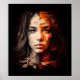 Surreales Porträtbild eines Frauengesichts auf schwarzem Hintergrund mit links und rechten Gesichtshälften. Das ist ein weiteres 100% originelles Schnürhammer Design.