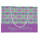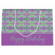 Personalisieren Sie den Geburtstagstext auf dieser hübschen Blume gemusterte Geschenktüte an Anzug oder jeden besondere Anlass, lila Hintergrund und Streifen kann auf jede Farbe, um Ihren eigenen Stil Anzug, und alle Elemente sind abnehmbar. Die Farben sind grün, aquamarin, Limon, lila und lila.