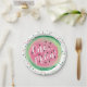 Dieses Design ist mit einem Wassermelonenkreuz in Rosa und Grün mit den Worten "One in a Melon!" in weißer Schrift, umgeben von rosa und grünen Konfetti auf weißem Hintergrund, ausgestattet. Ideal für eine Geburtstagsfeier im Sommer für ein kleines Mädchen, das ein Jahr alt wird.