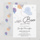 Ein süßer kleiner Geist, der mit Ballons spielt. Extravagante und elegante Script-Typografie. Einstellbarer Text für leicht zu bedienende Babydusche-Einladungen. Niedliches und einfaches Halloween. Oktober Thema Babydusche. Alle Kunstwerke von Valarie Wade.