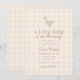 Feiern Sie Ihre Babydusche mit den Einladungen "Ein wenig Gänse ist unterwegs". Dieses einfache und hübsche Design mit niedlicher, handgezeichnet Gänseabildung und einem weichen rosa Gingham-Hintergrund ist perfekt für ein zeitloses Babyduschthema geeignet