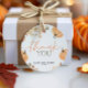 Eine kleine Kürbis-Fall-Babydusche rund Geschenkanhänger