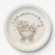 Ein kleiner Kürbis ist auf dem Weg Papier Teller. Dieses skurrile Babyduschdesign verbindet das gemütliche Gefühl des Herbstes mit einer modernen boho-schicken Ästhetik. Diese Papiertafel mit einer handbemalten Aquarellbildermalerei eines rustikalen Babywagens, das mit Kürbissen, Pampas-Gras und Eukalyptus überflutet ist, eignet sich perfekt für ein Fest im Herbst. Die weiche, cremige Farbpalette und die eleganten Schriftart sorgen für ein gemütliches und einladendes Ambiente, das sowohl raffiniert als auch süß wirkt.