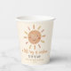 Eine kleine Sonnenstraße mit gelber Sonnendusche Pappbecher