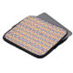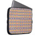 Eine Laptop-Hülle mit einem lebendigen, komplizierten geometrischen Muster in Gelb, Blau und Rosa. Der Ton ist farbenfroh und lebendig und unterstreicht das Tech-Accessoire.