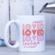 Eine Liebe Lehrer Pink Moderner Personalisierter Name Kaffee Tasse zeigt den Text "ein geliebter Lehrer" in modernen rosa Drehbuch Typografie mit Liebe Herzen und personalisiert mit Ihrem individuelle Name. Perfekt für Ihren Lieblingslehrer für Lehrerbewertungen, Geburtstag, Weihnachten, Feiertage und mehr. Von Evco Studio entworfen www.zazzle.com/store/evcostudio