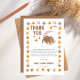 Ein niedliches kleines Dinosaurier-neutrales Baby-Dusche "Danke"-Design mit einem wertvollen kleinen Dinosaurier-Baby, das vor einem gemusterten Mond in einem Rahmen von Dinosaurier-Fußabdrücken umgeben ist.