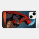 Eine rote Figur kröpft tief auf einem mondbeleucht Case-Mate iPhone 14 Hülle