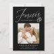 Erfahren Sie mehr über Ihre Verlobung mit diesen Verlobungen aus dem Foto! Die Ankündigungen enthalten die Phrase "Forever hat einen schönen Ring zu ihm" in einem weißen Kalligraphieskript, das durch eine Illustration der Eheringe auf einem schwarzen Hintergrund betont wird. Ihr quadratisches Foto wird in der Nähe der Mitte des Designs mit Ihren Namen und weiteren Details angezeigt. Die Ankündigung der modernen Verlobung kehrt zurück, um ein geometrisches, weißes und schwarzes Design zu zeigen.