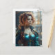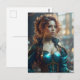 Eine schöne, lang haarige Frau mit blauen und goldenen KI-Outfits erschuf Kunst