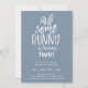 Niedliche "Bunny" Geburtstagsfeier in staubblau. Weiße Typografie mit sonniger Ohrakzent und handgezeichnet Korbflechtmuster-Rückenlehne.