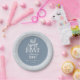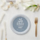 Niedliche Geburtstagsfeierplatte "Bunny". Weiße Typografie mit sonniger Ohrakzent. Handgezeichnet Korbflechtmuster Rand in staubblauer Farbe.
