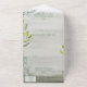 Elegante Aquarell-Blätter in einer Einladung zur Hochzeit, die die Hochzeitsinfo und die UAWG postcard beinhaltet, die Ihre Gäste abreißen und versenden. Umschläge werden nicht benötigt. Die Farben Gelb, Holzkohle grau, Blues und Grün. Ideal für einen Sommer im Freien, Herbst, Boho, Barn oder Hochzeit in den Bergen!