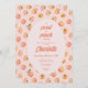 Spaß "Sweet Small Peach" Einladung mit einer Touch Retro für Babyduschen. Das niedliche Pastellpfirsichmuster ist mit einem rosafarbenen Hintergrund und einem kontrastierenden orangefarbenen Schriftart versehen.